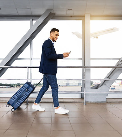 حقيبة سفر إيكولاك سيليسترا الصلبة القابلة للتوسيع، مقاس 76.5 سم، مزودة بأربع عجلات مزدوجة، وعجلات تسجيل وصول، لون أزرق داكن - PC183XA