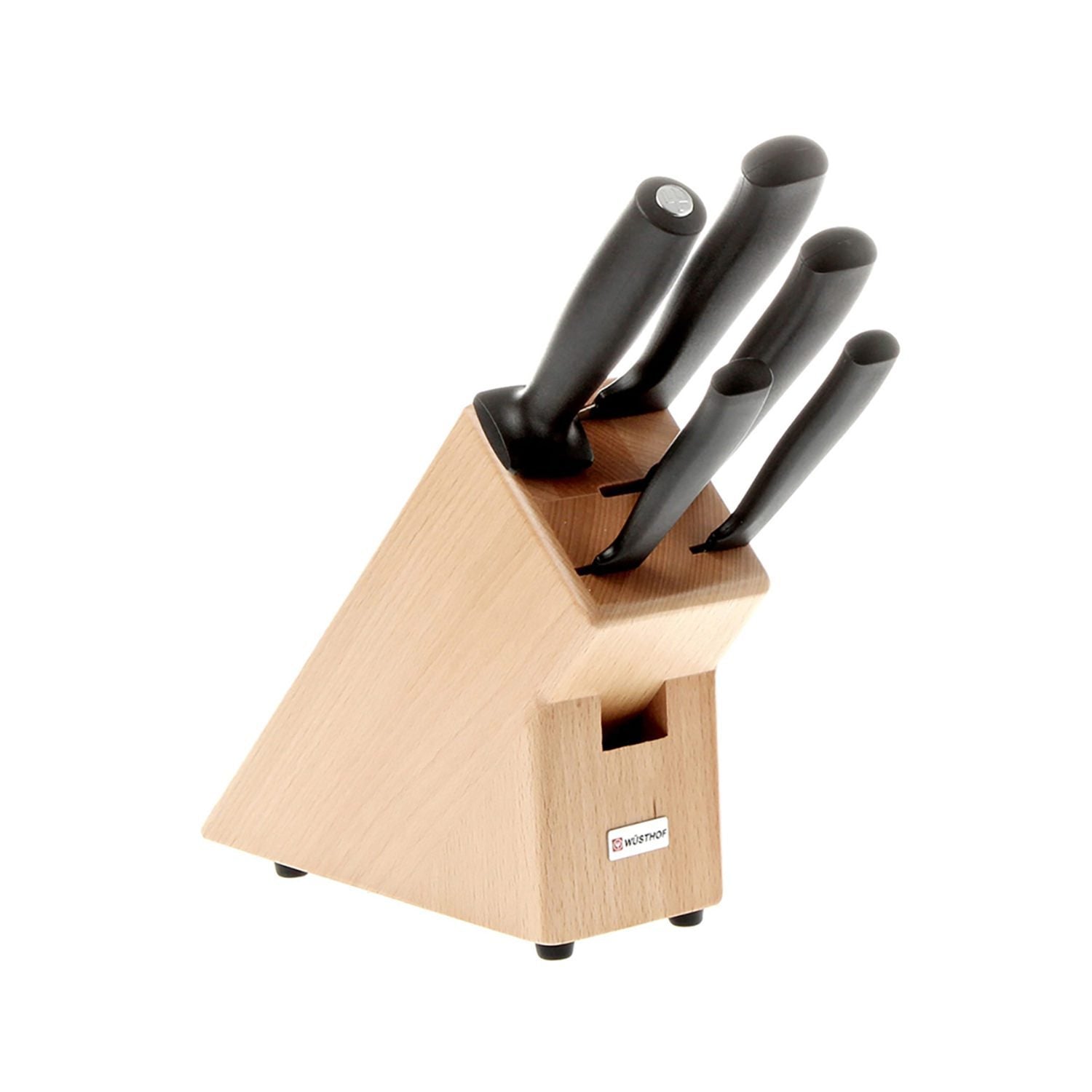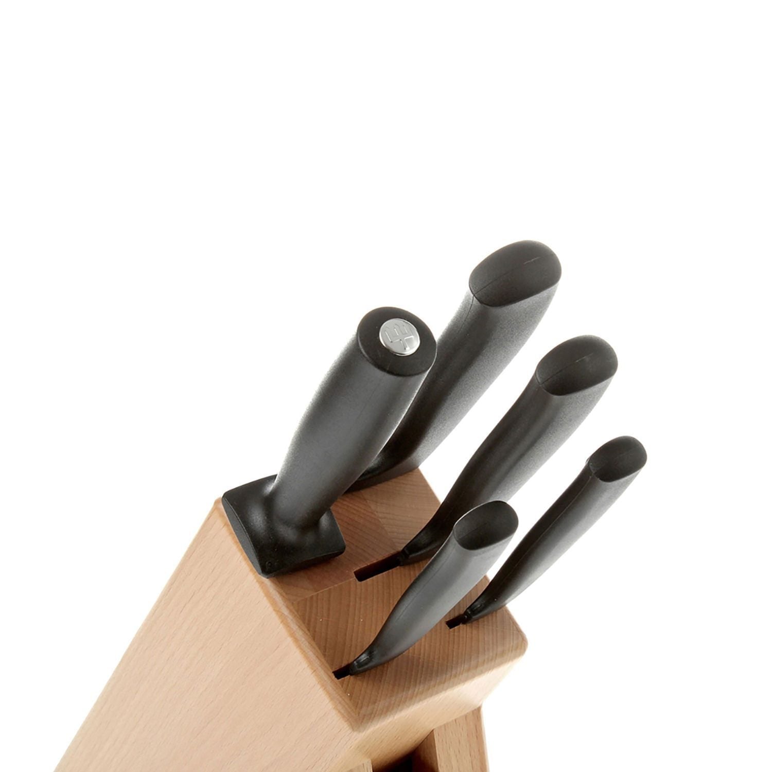 السعر العادي 66.000 KDارتقِ بمهاراتك في الطهي مع مجموعة سكاكين كلاسيك آيكون المكونة من خمس قطع. مقابض السكاكين مصنوعة من مادة البولي بروبيلين التي توفر مقاومة للحرارة ومقاومة للصدمات. تصميمها المريح يعزز ثباتها أثناء التقطيع. تضمن الكتلة الخشبية الجميلة المستخدمة لتثبيت السكاكين تخزينًا آمنًا، كما تُضفي لمسة جمالية على ديكور مطبخك.