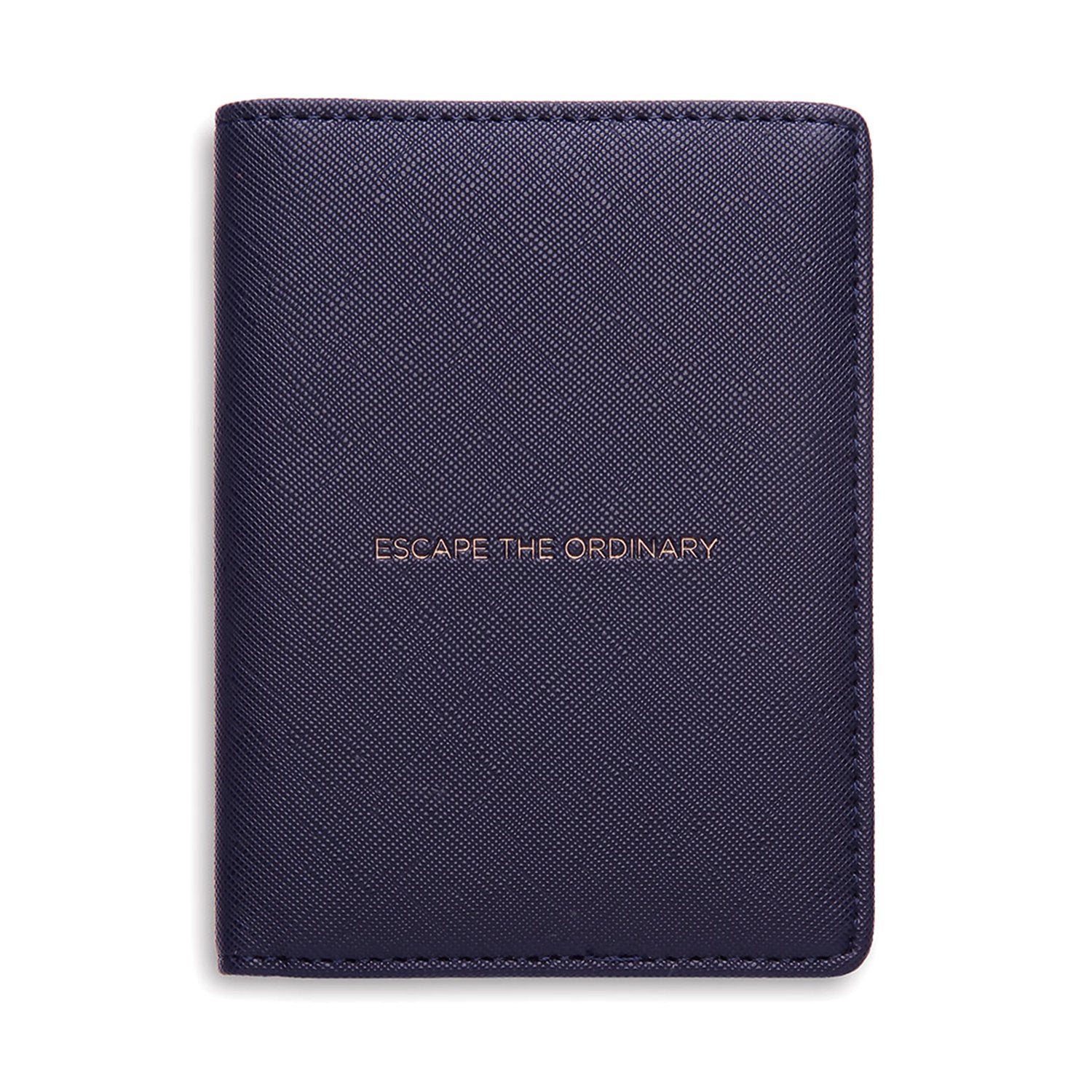 تُكمل حافظة جواز السفر من إستيلا بارتليت شغفك بالسفر. صُممت لتحافظ على جواز سفرك بأمان أثناء سفرك براحة بال تامة. صُنعت من جلد نباتي يمنحها ملمسًا غنيًا. نقشت عبارة "المغامرة بانتظارك" باللون الذهبي على الجهة الأمامية، متباينةً مع لونها الكحلي.