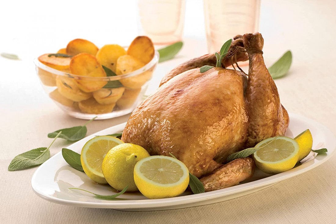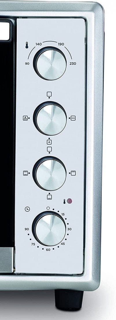الملحقات: صينية شواء، مقبض لإزالة الصينية، صينيتان للخبز من المينا، سيخ دوار، مقبض لإزالة السيخ الدوار، صينية فتات