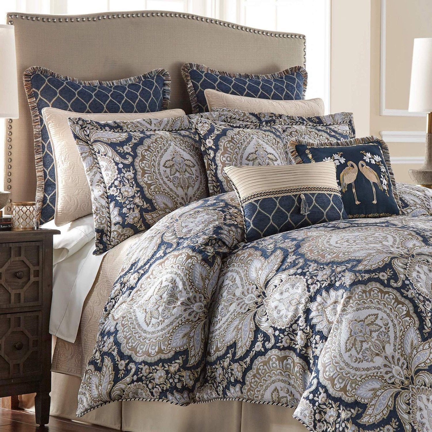 | لحاف واحد 279.4 سم × 243.84 سم | قطعة واحدة من شرائح الفيليه 198.12 سم × 203.2 سم | 2 قطعة من أغطية الوسائد 91.44 سم × 50.8 سم |